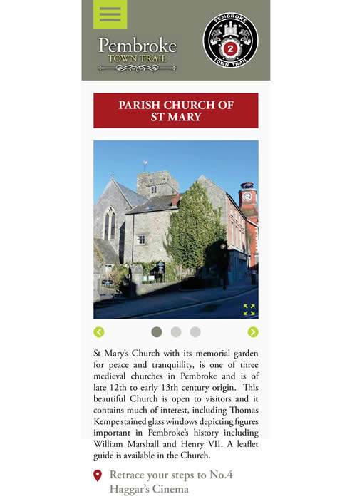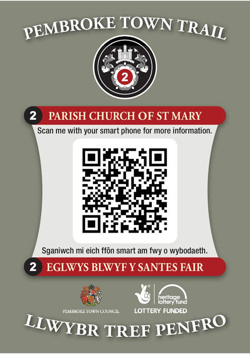 Now with funding from the Heritage Lottery, last year we launched the Digital Town Trail. Working with Modern Print, Pembroke Dock, a new website has been made which enables you to explore Pembroke digitally - it can be accessed via plaques bearing QR codes sited around the town. As an added plus, the Trail is bi-lingual in Welsh and English. To find our more, go to https://www.pembroketowntrail.wales