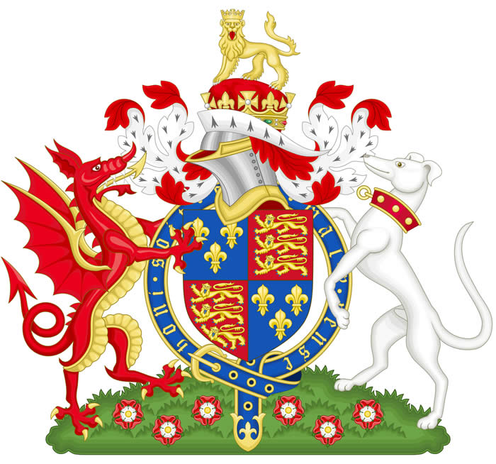 The supporters of the Tudor Coat of Arms are the Welsh Dragon and the White Greyhound.