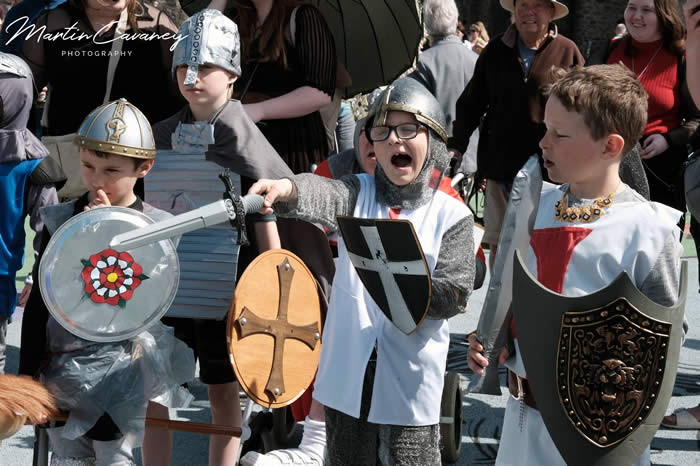 On May 7th the long awaited statue of William Marshal was unveiled. And what a great day it was - the community turned out in force to witness it. And they were not disappointed. HM Deputy Lord Lieutenant Mr Meurig Raymond did the honours. pulling away the covering sheet to reveal the magnificent, life size, bronze statue by Harriet Addyman. Following the unveiling ceremony, everyone made their way to the Castle for a community celebration which, thanks to the generosity of the Castle Trustees, was opened up with free entry for all.